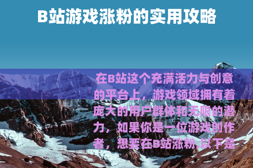 在B站这个充满活力与创意的平台上,游戏领域拥有着庞大的用户群体和无限的潜力,如果你是一位游戏创作者,想要在B站涨粉,以下是一些实用的方法。
