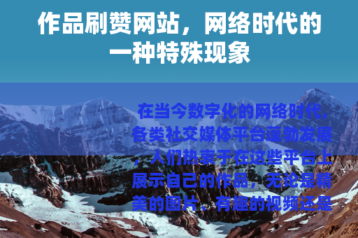 在当今数字化的网络时代,各类社交媒体平台蓬勃发展,人们热衷于在这些平台上展示自己的作品,无论是精美的图片、有趣的视频还是富有深度的文字,而与此同时,一种名为作品刷赞网站的事物也悄然兴起,在网络世界中占据了一席之地。