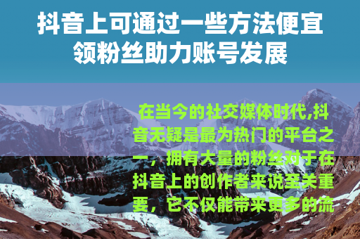 在当今的社交媒体时代,抖音无疑是最为热门的平台之一,拥有大量的粉丝对于在抖音上的创作者来说至关重要,它不仅能带来更多的流量和曝光,还能为创作者开启更多的商业机会和合作可能,而如何以相对便宜的方式领取粉丝,成为了许多抖音创作者关注的焦点。