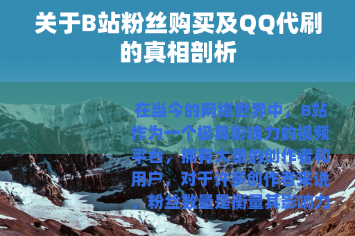 在当今的网络世界中,B站作为一个极具影响力的视频平台,拥有大量的创作者和用户,对于许多创作者来说,粉丝数量是衡量其影响力和成功的一个重要指标,这也引发了一些不良现象,其中就包括B站粉丝购买以及QQ代刷等行为。