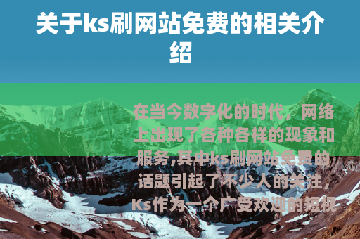 在当今数字化的时代,网络上出现了各种各样的现象和服务,其中ks刷网站免费的话题引起了不少人的关注。