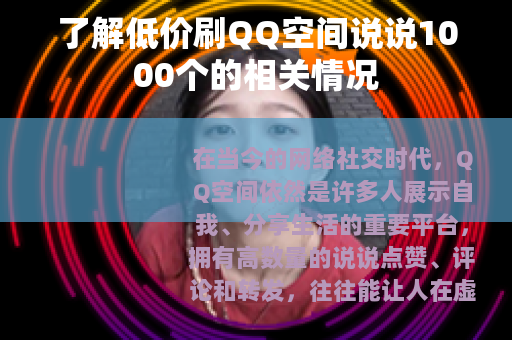 在当今的网络社交时代,QQ空间依然是许多人展示自我、分享生活的重要平台,拥有高数量的说说点赞、评论和转发,往往能让人在虚拟社交中获得更多的关注和满足感,而“低价刷QQ空间说说1000个”这样的服务也随之出现在大众的视野中。