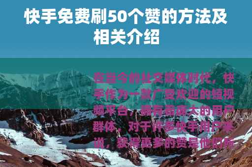 在当今的社交媒体时代,快手作为一款广受欢迎的短视频平台,拥有着庞大的用户群体,对于许多快手用户来说,获得更多的赞是他们所期望的,因为赞的数量在一定程度上代表着作品的受欢迎程度和影响力,而关于快手免费刷50个赞的话题,也引起了不少人的关注。