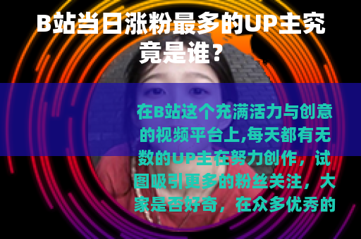 在B站这个充满活力与创意的视频平台上,每天都有无数的UP主在努力创作,试图吸引更多的粉丝关注,大家是否好奇,在众多优秀的创作者中,B站一天涨粉最多的是哪个UP主呢?