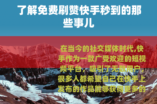 在当今的社交媒体时代,快手作为一款广受欢迎的短视频平台,吸引了无数用户,很多人都希望自己在快手上发布的作品能够获得更多的点赞,从而增加曝光度和人气,而“免费刷赞快手秒到”这样的服务也随之出现,引发了不少人的关注。