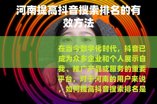在当今数字化时代,抖音已成为众多企业和个人展示自我、推广产品或服务的重要平台,对于河南的用户来说,如何提高抖音搜索排名是一个备受关注的问题,以下是一些切实可行的方法,帮助河南的抖音用户在搜索排名中脱颖而出。 质量是关键,要制作出高质量、有价值且具有吸引力的视频内容,了解河南地区用户的兴趣和需求,例如河南的美食文化、旅游景点、传统技艺等,围绕这些主题创作独特的视频,能够更好地吸引本地及更广泛用户的关注,在视频制作过程中,确保画面清晰、稳定,声音清晰可听,同时运用好剪辑技巧,使视频节奏紧凑、流畅,提升用户的观看体验。