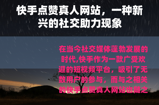 在当今社交媒体蓬勃发展的时代,快手作为一款广受欢迎的短视频平台,吸引了无数用户的参与,而与之相关的快手点赞真人网站也随之兴起,成为了一个备受关注的话题。