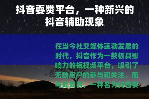 在当今社交媒体蓬勃发展的时代,抖音作为一款极具影响力的短视频平台,吸引了无数用户的参与和关注,而与此同时,一种名为抖音耍赞平台的现象也逐渐兴起,成为了不少抖音用户讨论的话题。