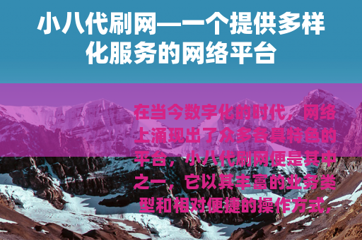 在当今数字化的时代,网络上涌现出了众多各具特色的平台,小八代刷网便是其中之一,它以其丰富的业务类型和相对便捷的操作方式,吸引了不少用户的关注。