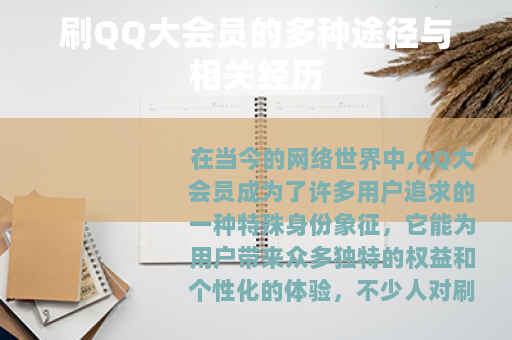 在当今的网络世界中,QQ大会员成为了许多用户追求的一种特殊身份象征,它能为用户带来众多独特的权益和个性化的体验,不少人对刷QQ大会员产生了浓厚的兴趣。