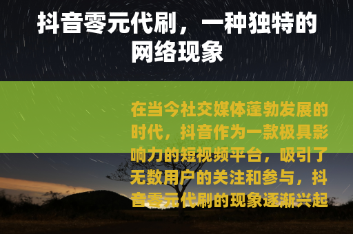 在当今社交媒体蓬勃发展的时代,抖音作为一款极具影响力的短视频平台,吸引了无数用户的关注和参与,抖音零元代刷的现象逐渐兴起,成为了一个值得探讨的话题。