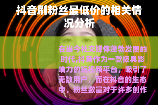 在当今社交媒体蓬勃发展的时代,抖音作为一款极具影响力的短视频平台,吸引了无数用户,而在抖音的生态中,粉丝数量对于许多创作者来说具有重要意义,抖音刷粉丝最低价这一话题便应运而生。