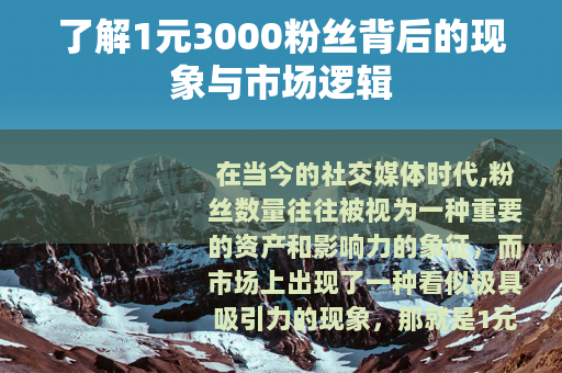 在当今的社交媒体时代,粉丝数量往往被视为一种重要的资产和影响力的象征,而市场上出现了一种看似极具吸引力的现象,那就是1元3000粉丝的交易模式。
