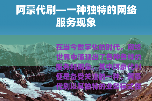 在当今数字化的时代,网络世界中涌现出了各种各样的服务和现象,其中阿豪代刷便是备受关注的一种,阿豪代刷以其独特的业务模式在网络的某个角落悄然兴起,吸引了不少人的目光。