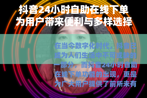 在当今数字化时代,抖音已成为人们生活中不可或缺的一部分,而抖音24小时自助在线下单功能的出现,更是为广大用户提供了前所未有的便利,开启了一种全新的消费体验。