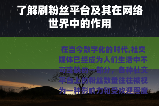 在当今数字化的时代,社交媒体已经成为人们生活中不可或缺的一部分,各种社交平台上的粉丝数量往往被视为一种影响力和受欢迎程度的象征,而刷粉丝平台也随之应运而生,成为了一个备受关注的话题。