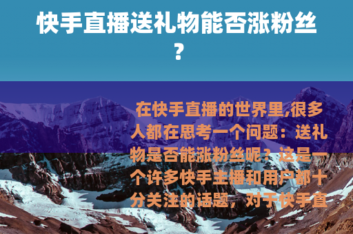 在快手直播的世界里,很多人都在思考一个问题:送礼物是否能涨粉丝呢?这是一个许多快手主播和用户都十分关注的话题。