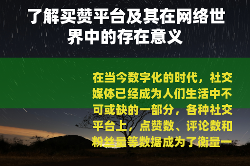 在当今数字化的时代,社交媒体已经成为人们生活中不可或缺的一部分,各种社交平台上,点赞数、评论数和粉丝量等数据成为了衡量一个人或一个品牌在网络上影响力的重要指标,在这样的背景下,买赞平台应运而生。