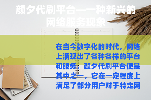 尽管如此,颜夕代刷平台在当前的网络环境中依然有其生存的空间,它的出现反映了网络时代人们对于关注度和流量的追求,以及在虚拟世界中塑造个人或品牌形象的渴望,随着技术的不断发展和网络环境的变化,颜夕代刷平台或许会不断调整和完善自己的服务模式,以适应新的形势和需求,但无论如何,用户在使用此类平台时,都应该理性看待其作用和风险,权衡利弊,做出明智的选择。