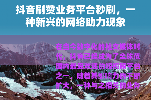 在当今数字化的社交媒体时代,抖音已经成为了全球范围内最受欢迎的短视频平台之一,随着其影响力的不断扩大,一种与之相关的业务——抖音刷赞业务平台秒刷也悄然兴起。