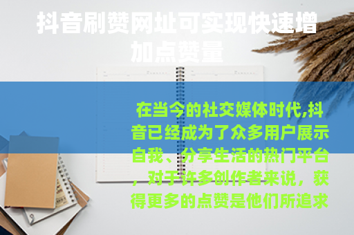 在当今的社交媒体时代,抖音已经成为了众多用户展示自我、分享生活的热门平台,对于许多创作者来说,获得更多的点赞是他们所追求的目标之一,因为点赞数量在一定程度上代表了作品的受欢迎程度和影响力,而抖音刷赞网址的出现,为一些希望快速提升点赞量的用户提供了一种途径。