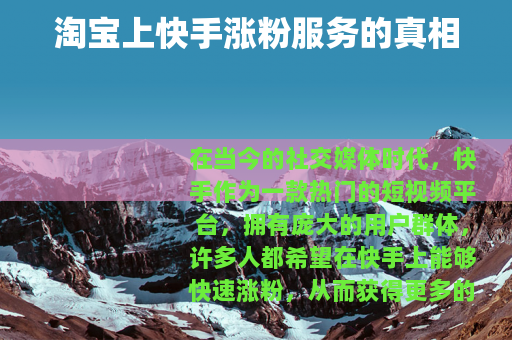 在当今的社交媒体时代,快手作为一款热门的短视频平台,拥有庞大的用户群体,许多人都希望在快手上能够快速涨粉,从而获得更多的关注和机会,而淘宝上出现了众多声称可以提供快手涨粉服务的商家,这一现象引起了不少人的关注。