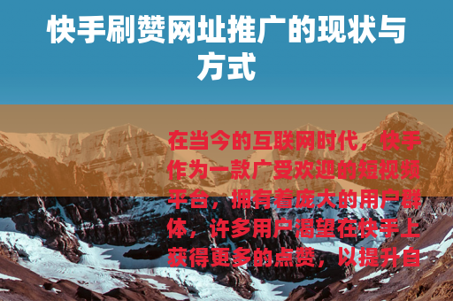在当今的互联网时代,快手作为一款广受欢迎的短视频平台,拥有着庞大的用户群体,许多用户渴望在快手上获得更多的点赞,以提升自己作品的热度和影响力,这也促使了快手刷赞网址推广这一现象的出现和发展。