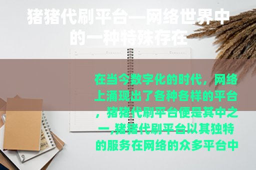 在当今数字化的时代,网络上涌现出了各种各样的平台,猪猪代刷平台便是其中之一,猪猪代刷平台以其独特的服务在网络的众多平台中占据了一席之地。