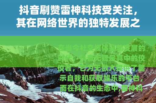 在当今社交媒体蓬勃发展的时代,抖音无疑是其中的佼佼者,它为无数人提供了展示自我和获取娱乐的平台,而在抖音的生态中,雷神科技以其独特的方式逐渐走进了大众的视野。