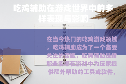 在当今热门的吃鸡游戏领域,吃鸡辅助成为了一个备受关注的话题,吃鸡辅助是指那些能够在游戏中为玩家提供额外帮助的工具或软件,它们以各种形式存在,并且在玩家群体中有着不同程度的使用情况。