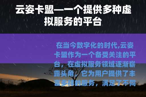 在当今数字化的时代,云姿卡盟作为一个备受关注的平台,在虚拟服务领域逐渐崭露头角,它为用户提供了丰富多样的服务,满足了不同人群在网络生活中的各种需求。
