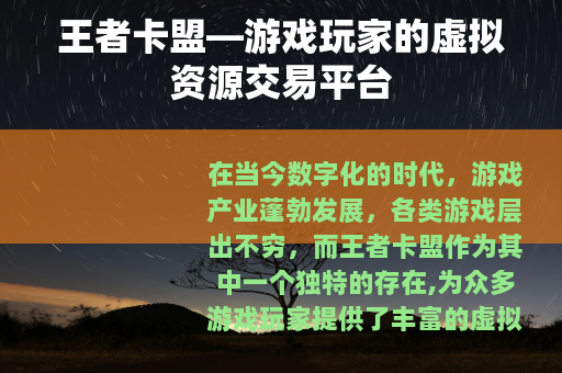 在当今数字化的时代,游戏产业蓬勃发展,各类游戏层出不穷,而王者卡盟作为其中一个独特的存在,为众多游戏玩家提供了丰富的虚拟资源交易服务。