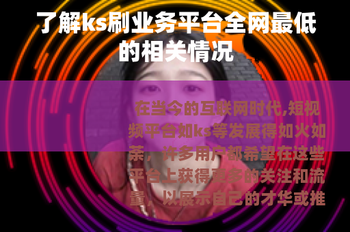 在当今的互联网时代,短视频平台如ks等发展得如火如荼,许多用户都希望在这些平台上获得更多的关注和流量,以展示自己的才华或推广自己的产品与服务,在这样的需求下,ks刷业务平台全网最低的说法逐渐在一些网络角落中出现。