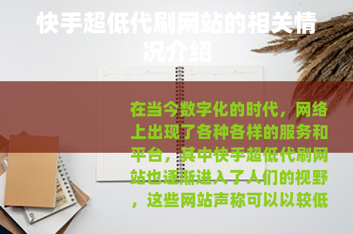 在当今数字化的时代,网络上出现了各种各样的服务和平台,其中快手超低代刷网站也逐渐进入了人们的视野,这些网站声称可以以较低的价格为用户提供快手相关的数据代刷服务,比如点赞数、评论数、粉丝量等等。