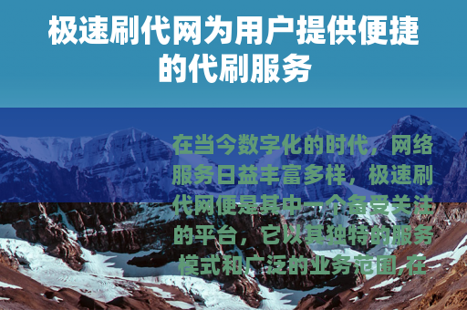 在当今数字化的时代,网络服务日益丰富多样,极速刷代网便是其中一个备受关注的平台,它以其独特的服务模式和广泛的业务范围,在网络世界中占据了一席之地。