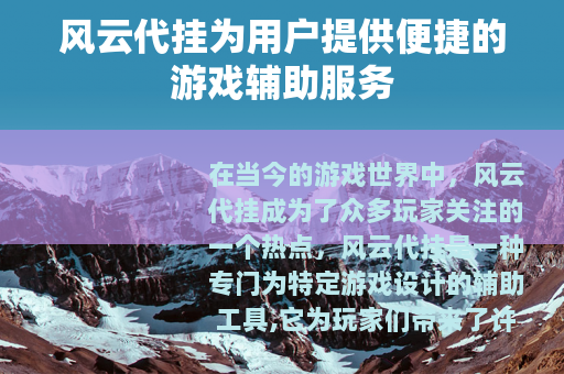 在当今的游戏世界中,风云代挂成为了众多玩家关注的一个热点,风云代挂是一种专门为特定游戏设计的辅助工具,它为玩家们带来了许多独特的便利和体验。