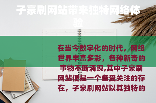 在当今数字化的时代,网络世界丰富多彩,各种新奇的事物不断涌现,其中子豪刷网站便是一个备受关注的存在。