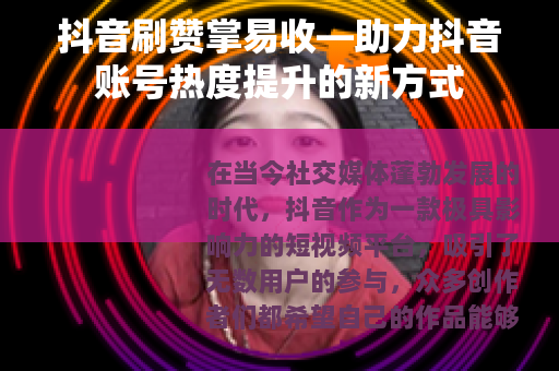 在当今社交媒体蓬勃发展的时代,抖音作为一款极具影响力的短视频平台,吸引了无数用户的参与,众多创作者们都希望自己的作品能够获得更多的点赞,从而提高账号的知名度和影响力,而抖音刷赞掌易收的出现,为这些创作者们提供了一种新的途径。