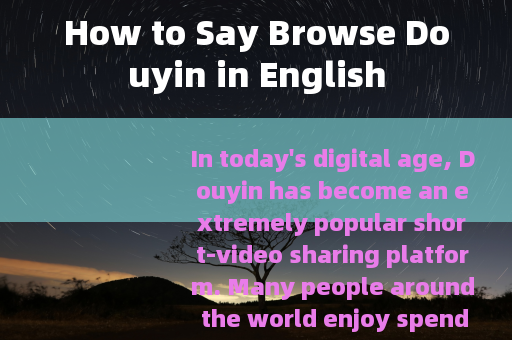 In today's digital age, Douyin has become an extremely popular short-video sharing platform. Many people around the world enjoy spending their free time on it. But have you ever wondered how to express the action of using Douyin in English? Well, the most common way to say it is "browse Douyin" or "watch videos on Douyin".