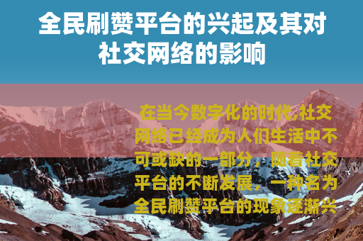 在当今数字化的时代,社交网络已经成为人们生活中不可或缺的一部分,随着社交平台的不断发展,一种名为全民刷赞平台的现象逐渐兴起,引起了广泛的关注和讨论。