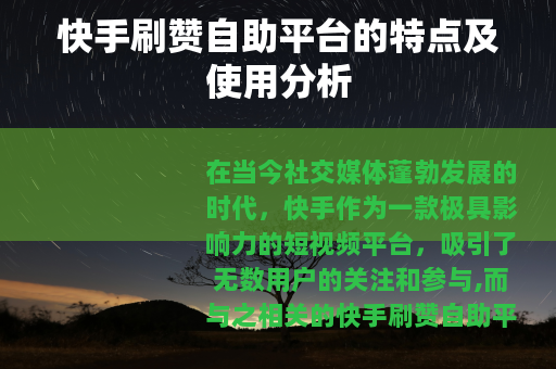 在当今社交媒体蓬勃发展的时代,快手作为一款极具影响力的短视频平台,吸引了无数用户的关注和参与,而与之相关的快手刷赞自助平台也逐渐进入了人们的视野。
