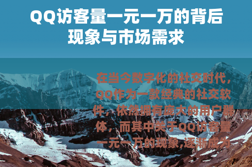 在当今数字化的社交时代,QQ作为一款经典的社交软件,依然拥有庞大的用户群体,而其中关于QQ访客量一元一万的现象,逐渐成为了一个引人关注的话题。