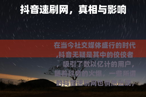 在当今社交媒体盛行的时代,抖音无疑是其中的佼佼者,吸引了数以亿计的用户,随着抖音的火爆,一些所谓的抖音速刷网也悄然出现,引发了广泛的关注和讨论。