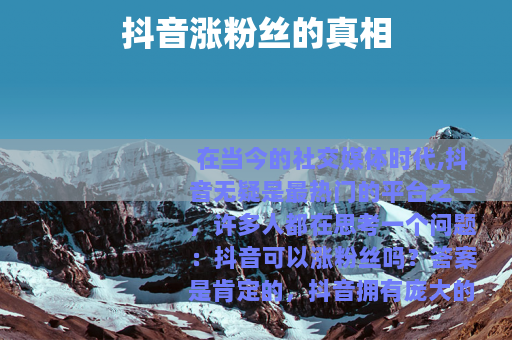 在当今的社交媒体时代,抖音无疑是最热门的平台之一,许多人都在思考一个问题:抖音可以涨粉丝吗?答案是肯定的。