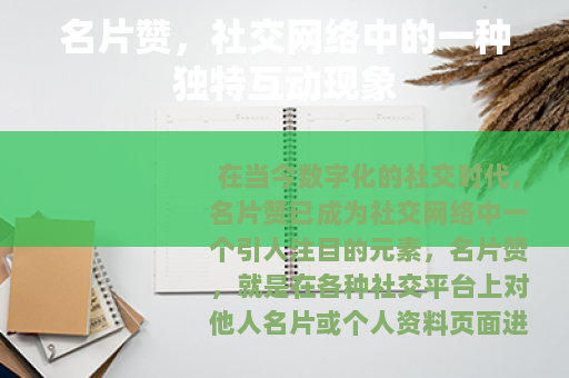 在当今数字化的社交时代,名片赞已成为社交网络中一个引人注目的元素,名片赞,就是在各种社交平台上对他人名片或个人资料页面进行点赞的行为,它看似只是一个小小的操作,但却蕴含着丰富的社交意义和价值。