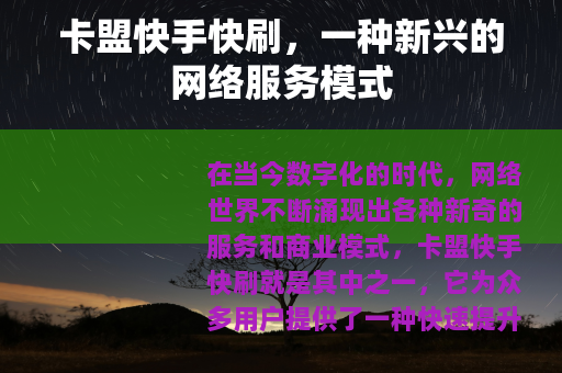 在当今数字化的时代,网络世界不断涌现出各种新奇的服务和商业模式,卡盟快手快刷就是其中之一,它为众多用户提供了一种快速提升快手账号相关数据的途径,在网络的大舞台上逐渐崭露头角。
