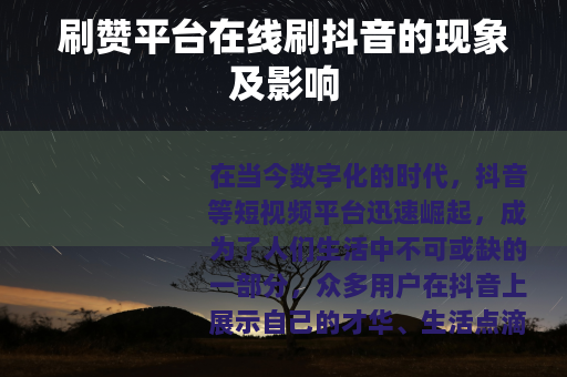 在当今数字化的时代,抖音等短视频平台迅速崛起,成为了人们生活中不可或缺的一部分,众多用户在抖音上展示自己的才华、生活点滴,渴望获得更多的关注和点赞,而与此同时,一种名为刷赞平台在线刷抖音的现象也悄然出现。