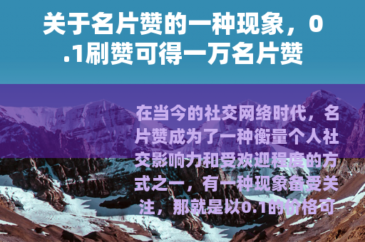 在当今的社交网络时代,名片赞成为了一种衡量个人社交影响力和受欢迎程度的方式之一,有一种现象备受关注,那就是以0.1的价格可以刷到一万名片赞。