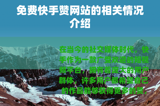 在当今的社交媒体时代,快手作为一款广受欢迎的短视频平台,拥有着庞大的用户群体,许多用户都希望自己的作品能够获得更多的赞,以此来增加作品的曝光度和影响力,在这样的需求下,免费快手赞网站应运而生。