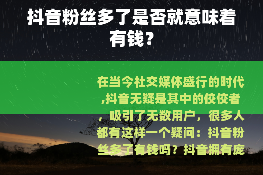 在当今社交媒体盛行的时代,抖音无疑是其中的佼佼者,吸引了无数用户,很多人都有这样一个疑问:抖音粉丝多了有钱吗?